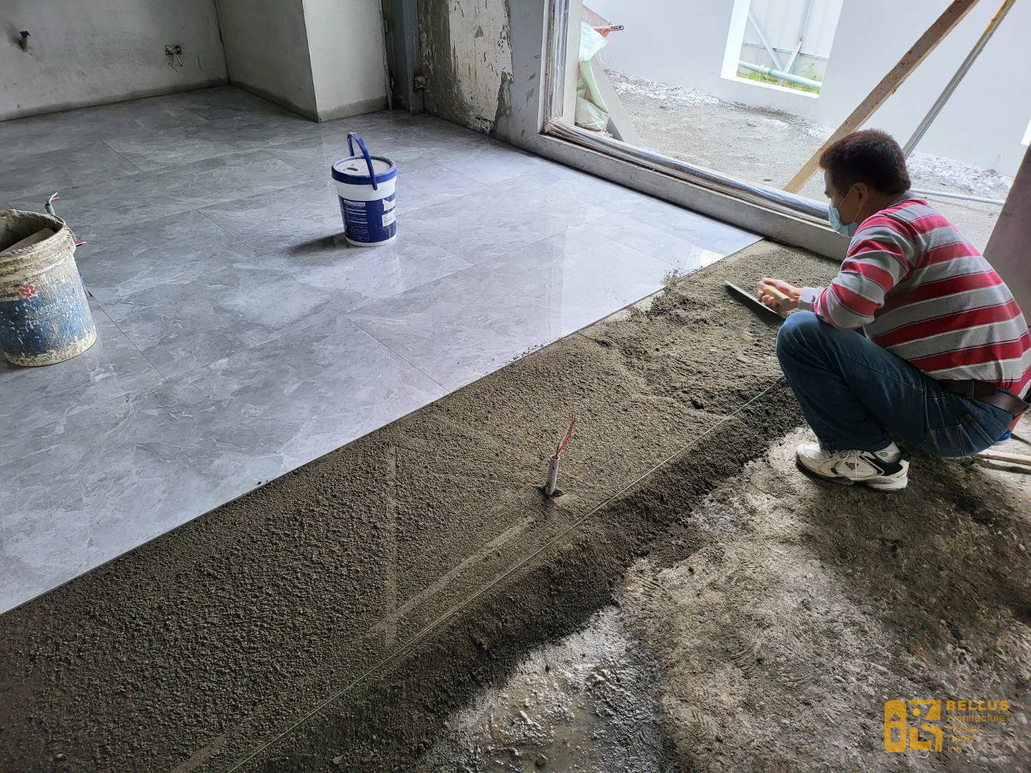 - 拉平 ( 圖中使用磁磚找平器 )